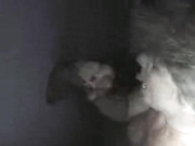 Gloryhole handjob onto titties
