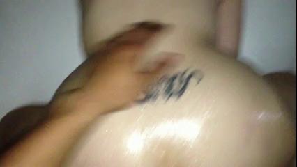husband oils his wife for me and film us