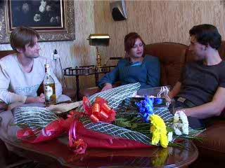 This drunk book-keeper has a mange in her pussy. It’s so wild and horny that she can’t hold it anymore between her beautiful legs! There are two young guys to help all her holes out.