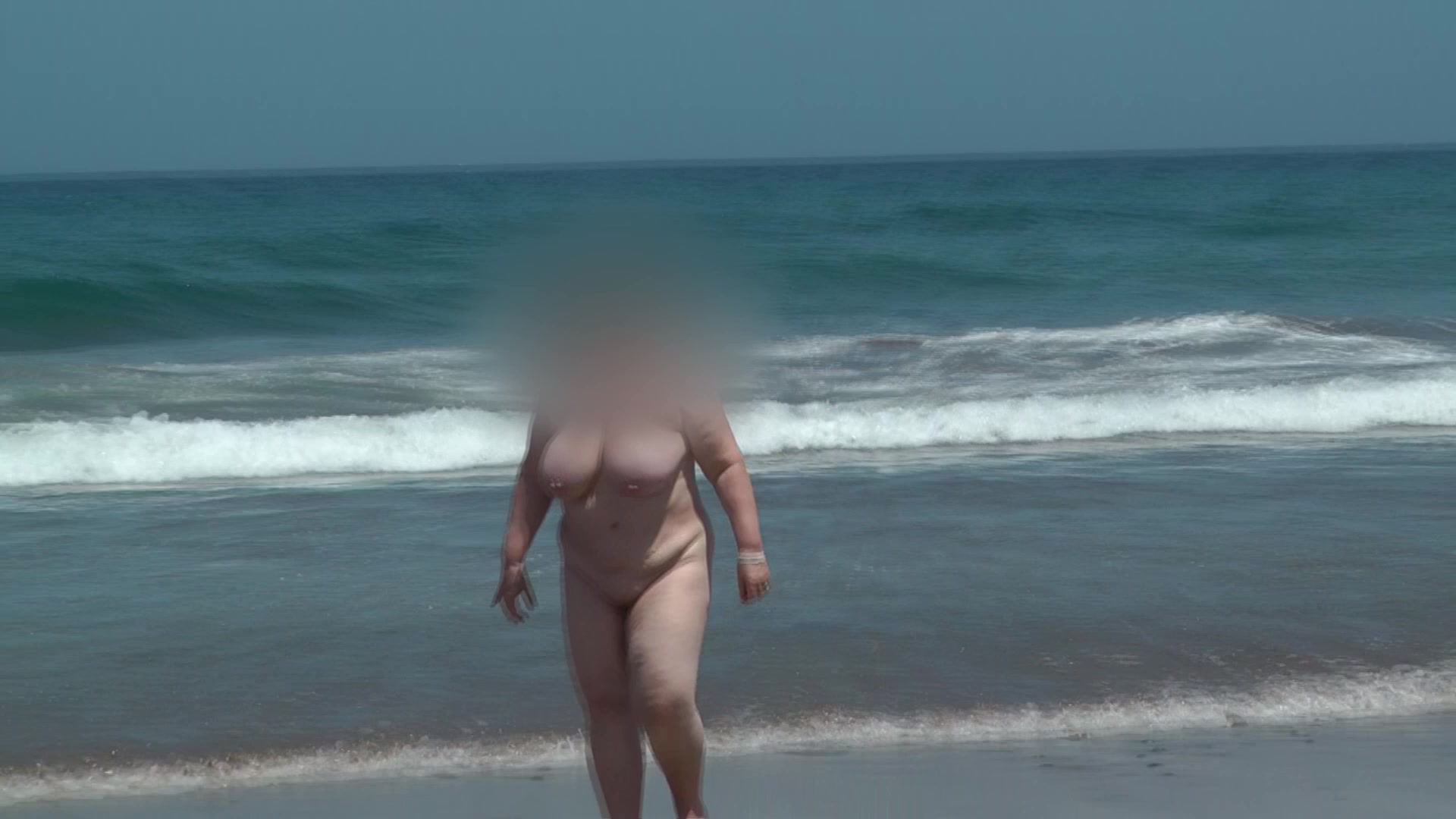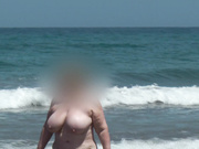 My Wife showing off her big boobs on the nudist beach