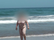 My Wife showing off her big boobs on the beach Video