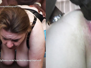 cuckold sissy fucked with huge red strap on cock