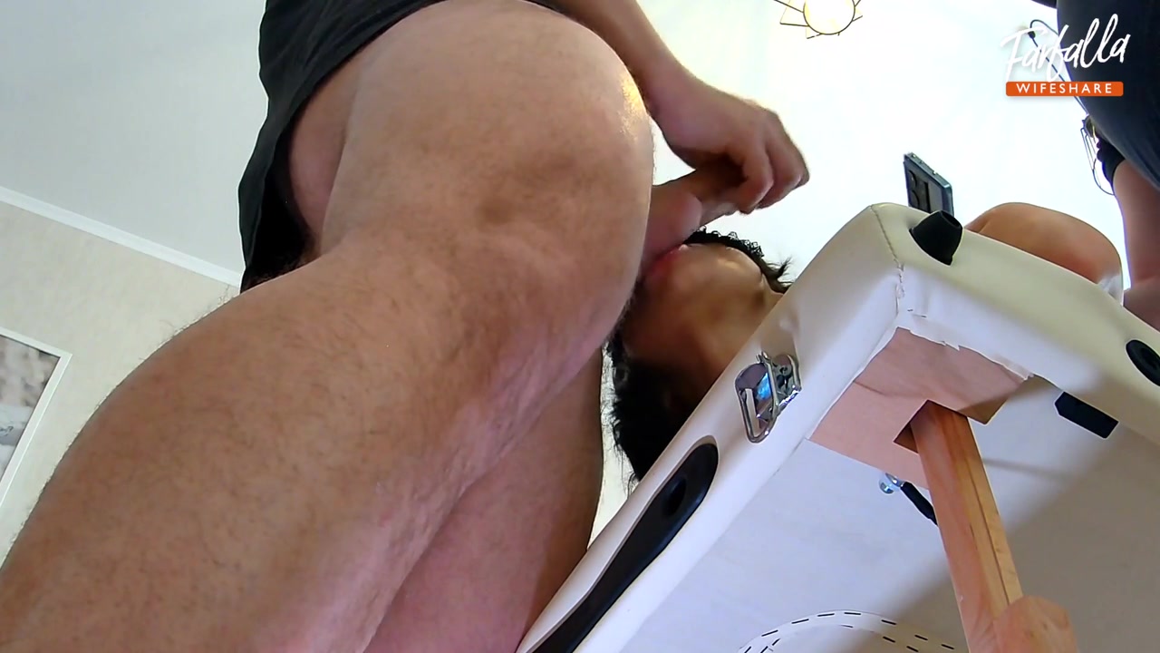 Wife gives double blowjob with cum in mouth. Threesome Video