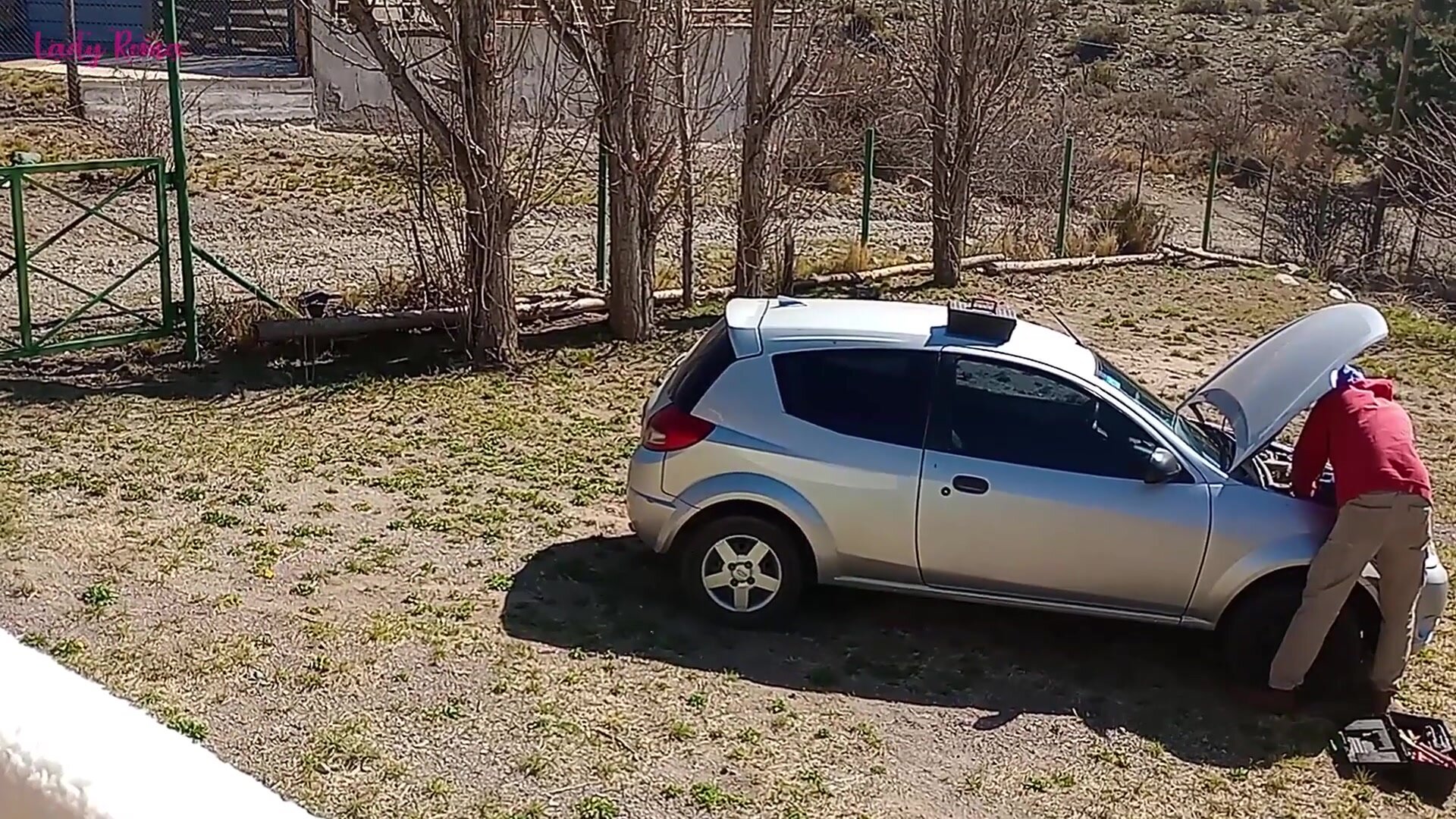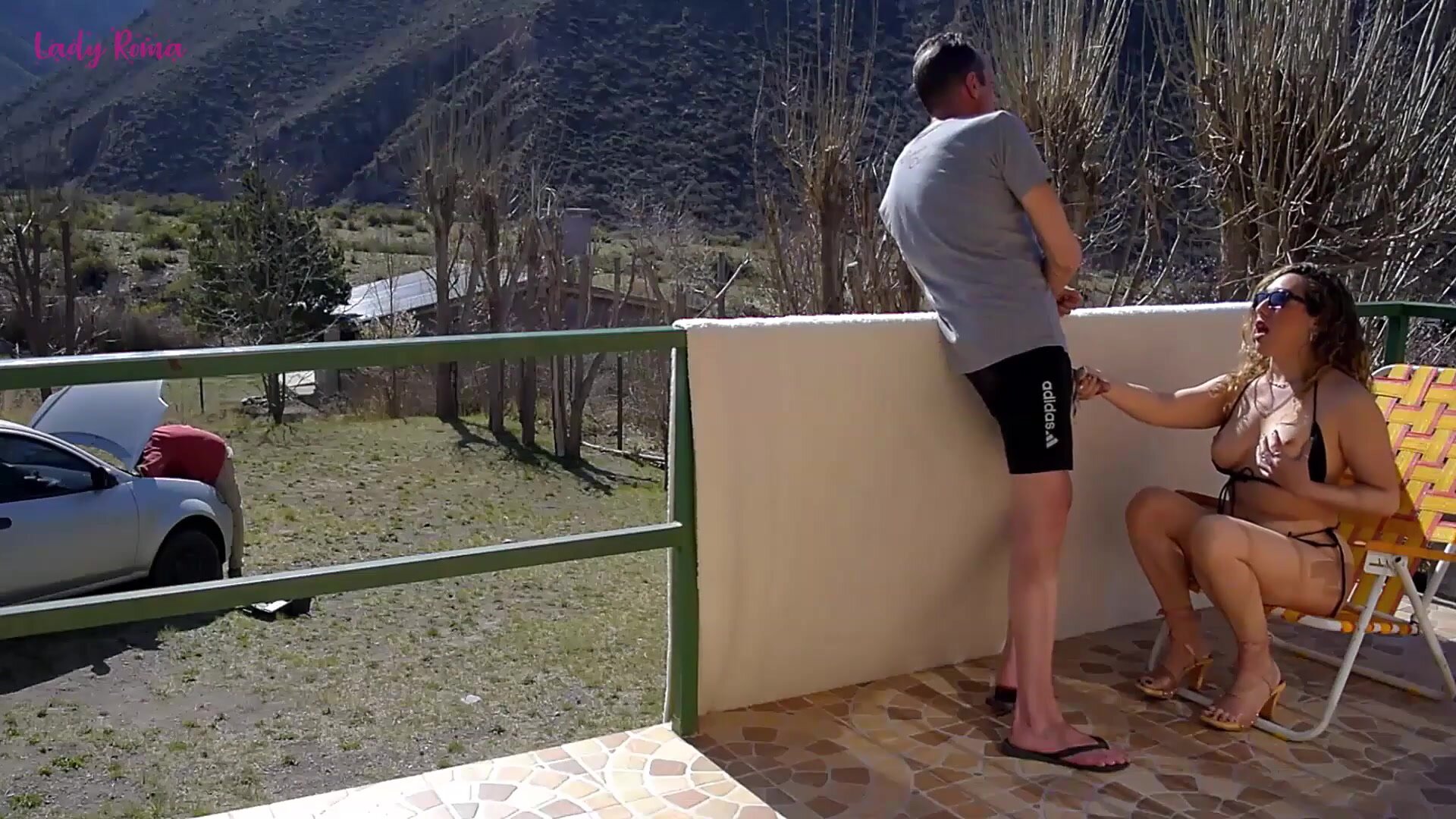 I fuck the neighbor while the cuckold works on his car Video