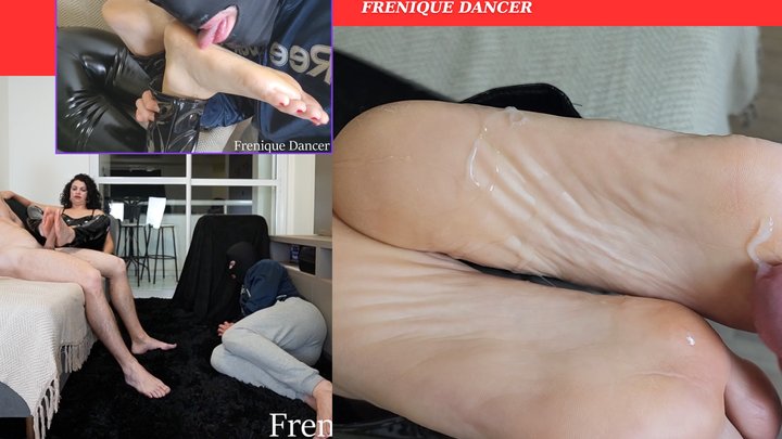 Frenique wants to make her slave lick her cummy soles ! she dominates him, puts him in his place, then receives her alpha to make a footjob on him! and finally after the alpha cums, she makes him lick it all!!