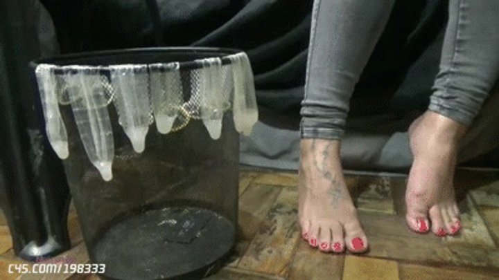 My slave Licked my Foot with Male Cum (condom) Cuckold by Mistress Beh # 1080HD Video